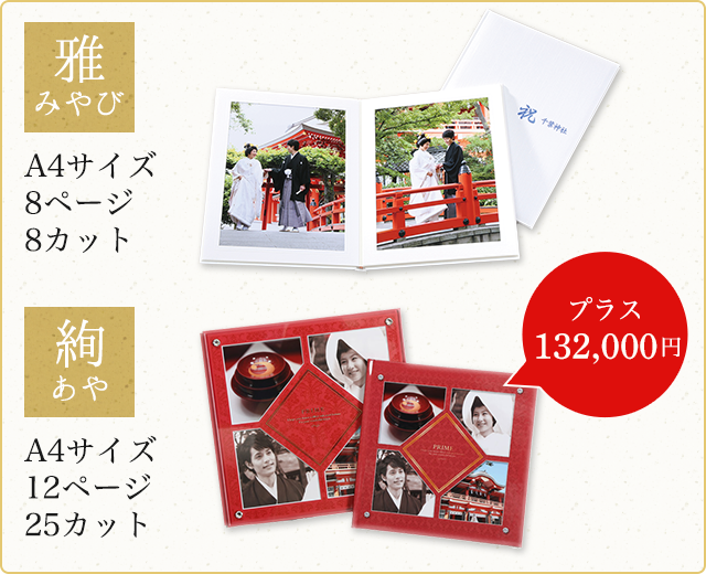 - 前撮りアルバム「雅(みやび)」がセットになったプランです。